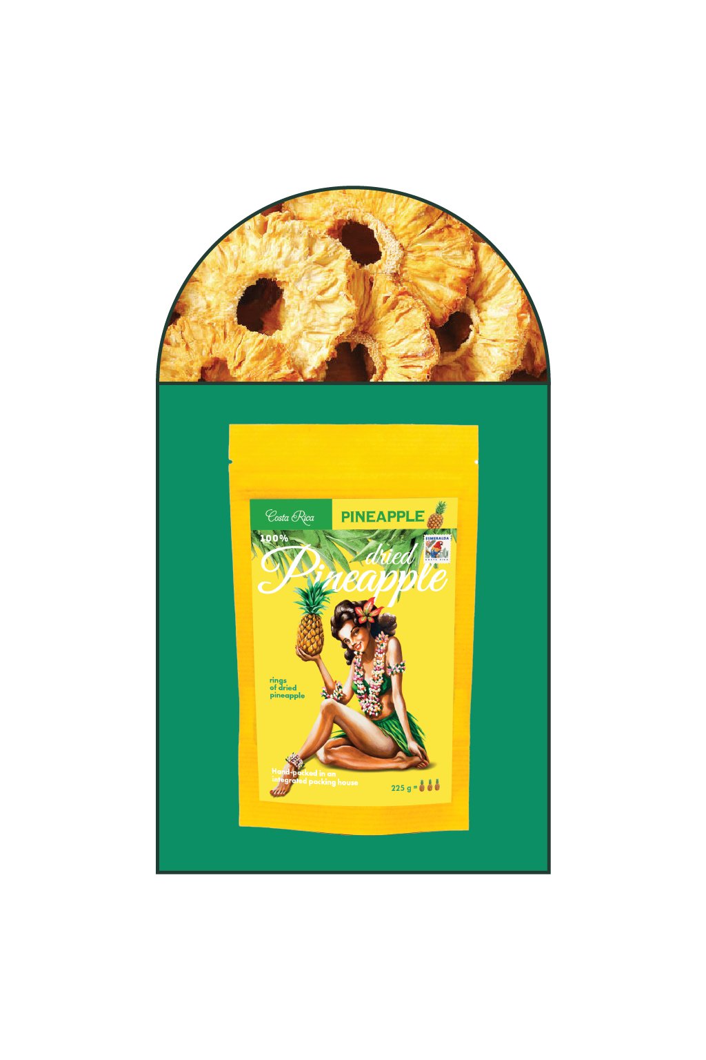 Dried pineapple from Costa Rica without added sugar, preservatives, sulphur dioxide, made with a simple method: we harvest only ripe and high quality pineapples on the plantation, gently clean them and dry them, preserving their natural texture, flavour and aroma of ripe fruit. This is why this dried pineapple tastes almost the same as a fresh pineapple ripened in the tropical sun. There is a big difference between regular candied pineapple and Esmeralda dried pineapple. Taste it and you'll know the difference :)